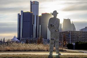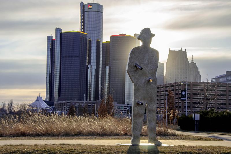 A metal structure stands guard over the City of Detroit, MI // Winter 2018