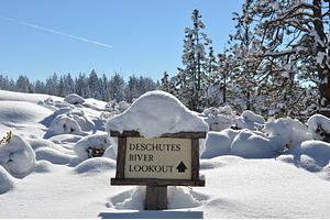 Snow Covers the path to the Deschutes River Lookout. Bend, OR // Winter 2017