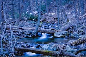 Long exposure capture of the flow of the Delaware Water Gap along the border of Pennsylvania and New Jersey in the Pocono Mountains // Winter 2019