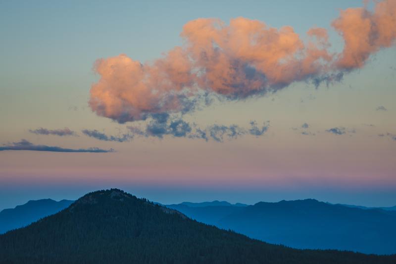 Sunrise colors fill the sky near Three Fingered Jack in Central Oregon // Summer 2018