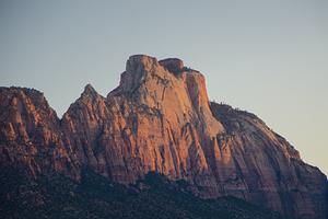 Early morning light hits one of the many towaring red rocks surrounding Zion National Park, Utah // Summer 2017