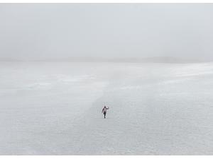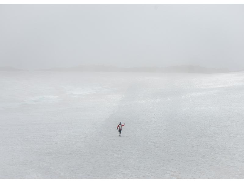 A backpacker and collegue of mine shoots his hand up in triumph after successfully scaling the South Sister Mountain in Central Oregon (10,358ft) // Summer 2019