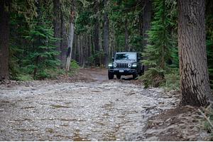 A Jeep Rubicon seconds before tearing through Icy waters in Mt. Hood National Forest, Oregon // Fall 2019