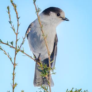 A Canada Jay perched near Mt. Hood. Captured at Trillium Lake in Oregon // Winter 2019