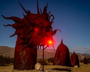 In a vast and desolate area LARGER than the state of Rhode Island, it’s quite a remarkable sight to see these metal structures inhabiting the land. In fact, if you visit this incredible area East of San Diego, be prepared to see more than 130 metal structures of creatures that were once thought to roam the landscape of the Anza-Borrego Desert, California’s largest state park. Whether it’s a gigantic dragon, a scorpion, a dinosaur, a sabertooth tigers, or a herd of elephants, just to name a few, this park is sure to bring out the best of your imagination. I had some fun with light trails here and was inspired by the fire breath of a dragon.... Highly suggest the visit! // Fall 2019