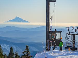 Late fall at Oregon's Mt. Hood's Timberline Lodge welcomes in early season skiing. In the background is Mt. Jefferson // Fall 2019