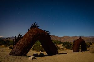 In a vast and desolate area LARGER than the state of Rhode Island, it’s quite a remarkable sight to see these metal structures inhabiting the land. In fact, if you visit this incredible area East of San Diego, be prepared to see more than 130 metal structures of creatures that were once thought to roam the landscape of the Anza-Borrego Desert, California’s largest state park. Whether it’s a gigantic dragon, a scorpion, a dinosaur, a sabertooth tigers, or a herd of elephants, just to name a few, this park is sure to bring out the best of your imagination. As you'll see from some of the images I captured, I had some fun with light trails here and was inspired by the fire breath of a dragon.... Highly suggest the visit! // Fall 2019