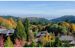 Fall colors lead the way to the Portland, OR skyline that sits in the background of the image // Fall 2019