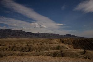 Nighttime photograph of a pathway leads to tall rock formations that encompass California's largest state park: Anza-Borrego Desert State Park // Fall 2019
