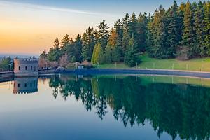 Water Reflections during sunset at the Reservoir within Portland's Mt. Tabor Park // Winter 2020