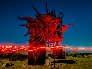 In a vast and desolate area larger than the state of Rhode Island, it’s quite a remarkable sight to see these metal structures inhabiting the land. In fact, if you visit this incredible area East of San Diego, be prepared to see more than 130 metal structures of creatures that were once thought to roam the landscape of the Anza-Borrego Desert, California’s largest state park. Whether it’s a gigantic dragon, a scorpion, a dinosaur, a sabertooth tigers, or a herd of elephants, just to name a few, this park is sure to bring out the best of your imagination. I had some fun with light trails here and was inspired by the fire breath of a dragon.... Highly suggest the visit! // Fall 2019