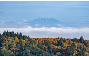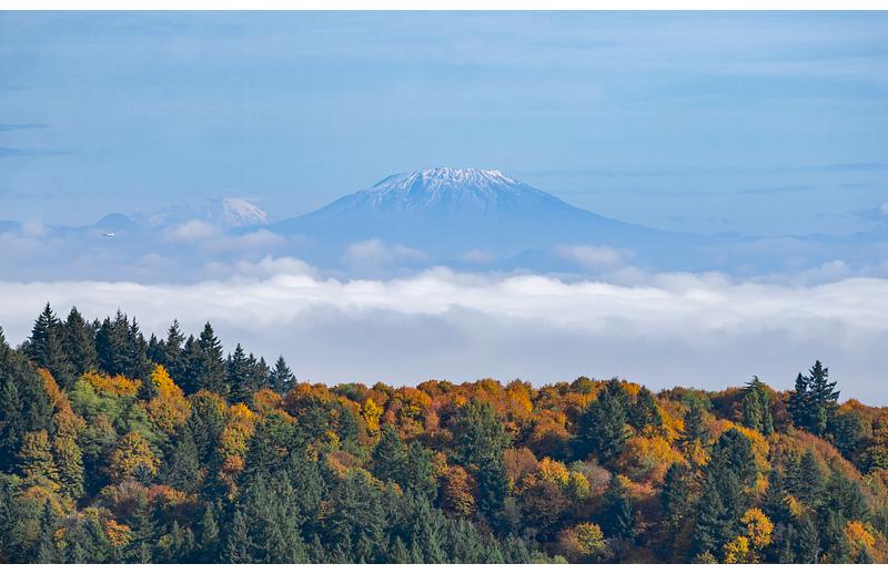 Autumn’s colors on full display leading to a layer of cloud coverage that sits below Washington's Mt. Saint Helens amidst a clear day in Portland, Oregon // Fall 2019