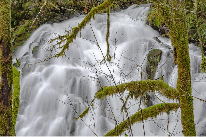 A long exposure of the silky stream of water flowing from Fishhawk Falls near the town of Jewell, Oregon // Winter 2019