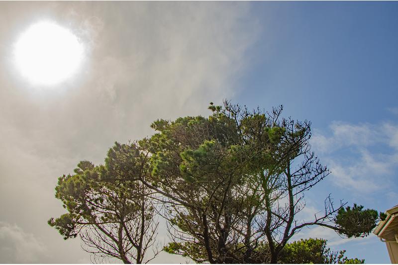 A tree splits the difference between two different skies that lie above it near Lincoln City Beach in Oregon // Winter 2020