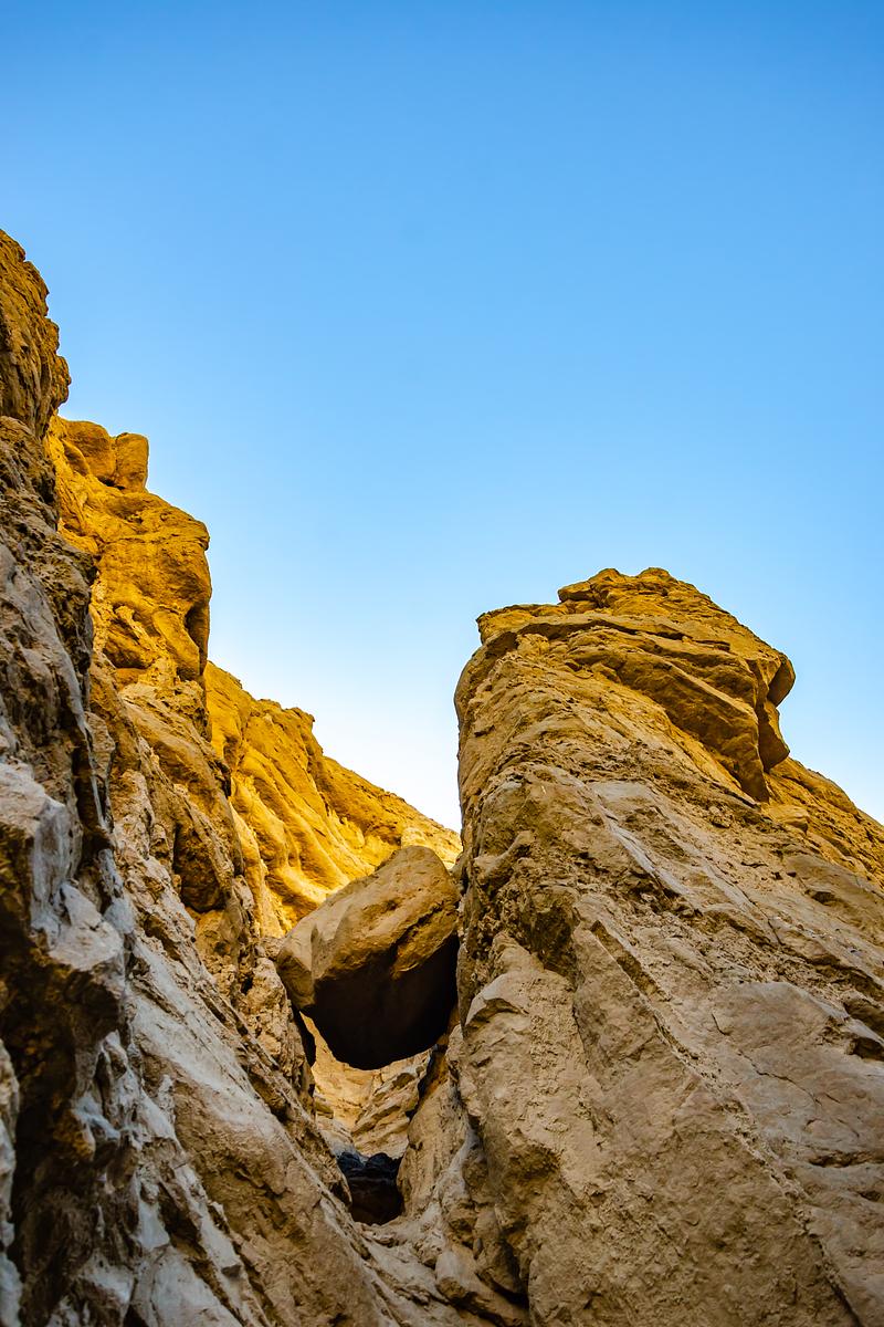 A blue sky day in juxtaposition to the towering rocks of Slot Canyon within California's Largest State Park, The Anza-Borrego Desert State Park // Fall 2019